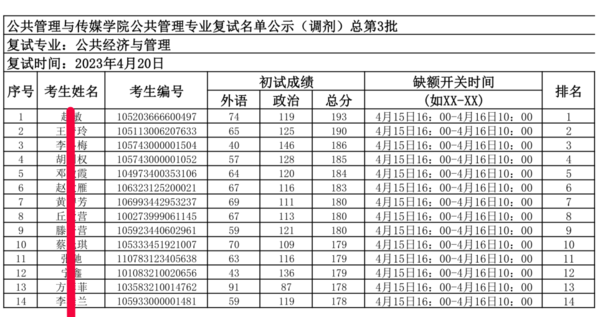 从2023考研上线及录取情况,可以看出:一志愿上线人数并不算多,只有17人;其次,复试分数也不高,最低只要166分,也就是只要过国家线就有复试机会了;最后,复试也是比较照顾一志愿的,一志愿上线17人,录取13人,只有4人没有被录取(未被录取,部分有可能是因为缺考)。 Part3:调剂情况 针对想要调剂桂林理工大学MPA的同学,下面的调剂复试及拂去情况可以作为大家的一个参考。 1、调剂复试名单