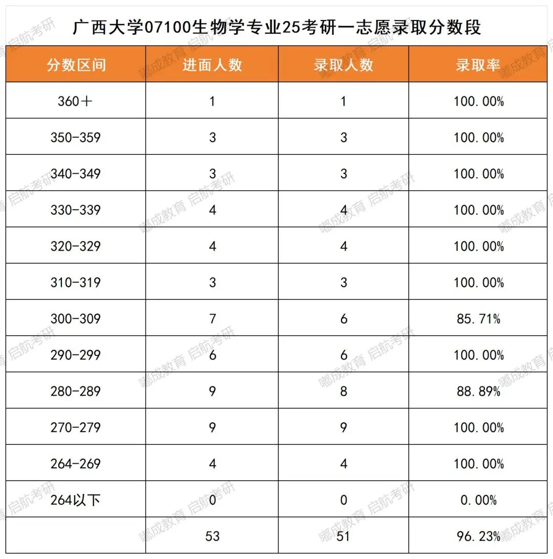 广西大学生物学专业2025考研录取数据分析156