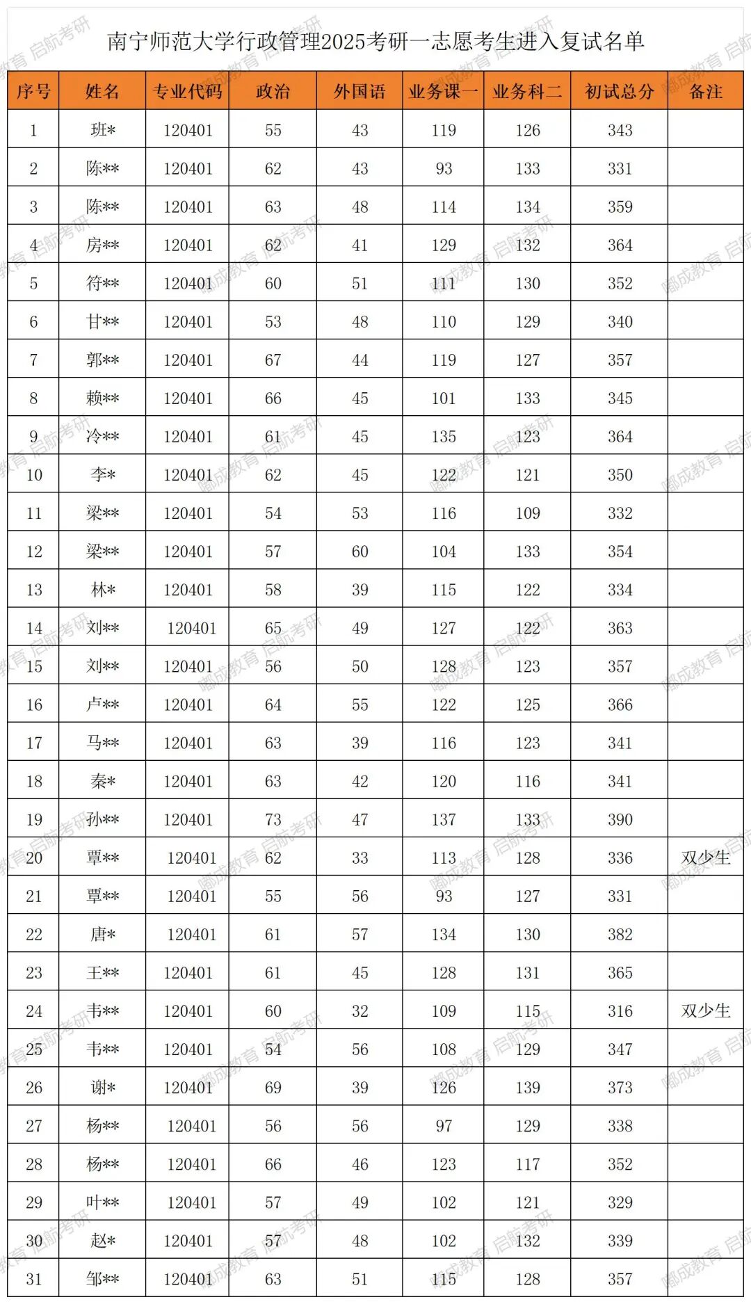 南宁师范大学行政管理专业2025考研录取数据分析18